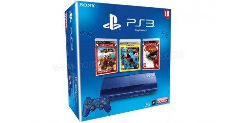 SONY PS3 Ultra Slim Bleue 500 Go MS2 U2 GOW3