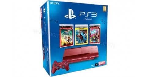 Sony PS3 Ultra Slim Rouge 500 Go- Un jeu en édition Essentials "Ratchet & Clank"